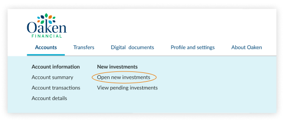 If you’ve already registered for Oaken Digital, just log in at digitalbanking.oaken.com and click on “Open new investments” under the “Accounts” tab to begin.